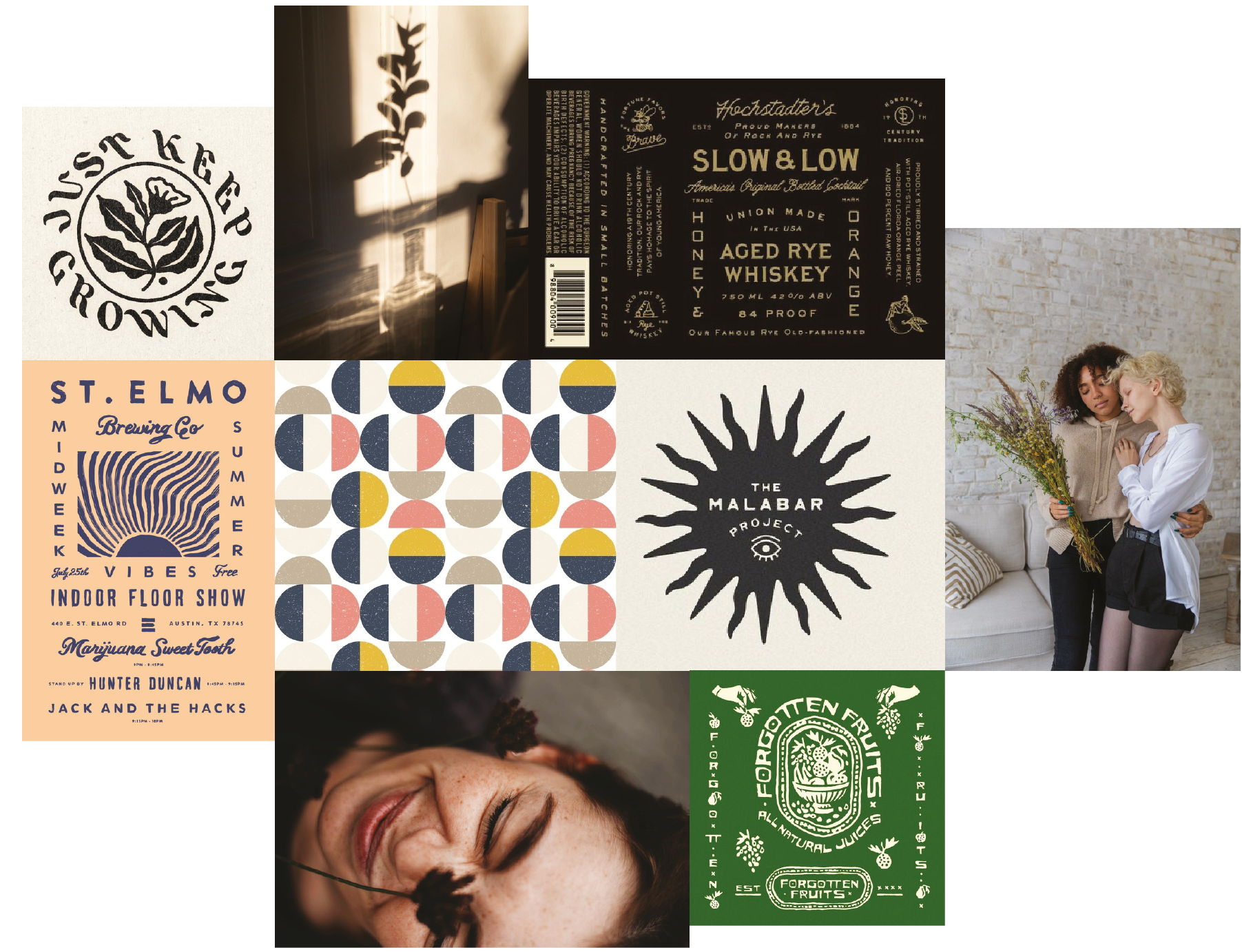 Method: For this project, I wanted to highlight the muted tones and bold typography of mid-century modern aesthetics. I was inspired by the patterns found on retro furniture, the colors of heirloom tomatoes, and type-heavy band posters.